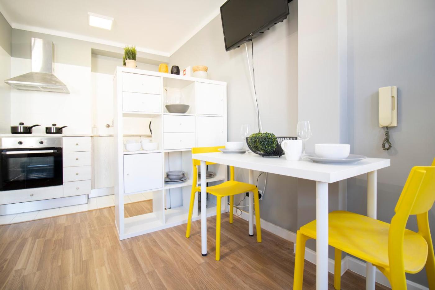 Este apartamento dispõe de 1 quarto, uma televisĂŁo de ecrĂŁ plano e uma cozinha totalmente equipada com frigorĂfico, forno, máquina de lavar roupa, placa de fogĂŁo e torradeira toalhas e roupa de cama sĂŁo providenciadas neste apartamento.