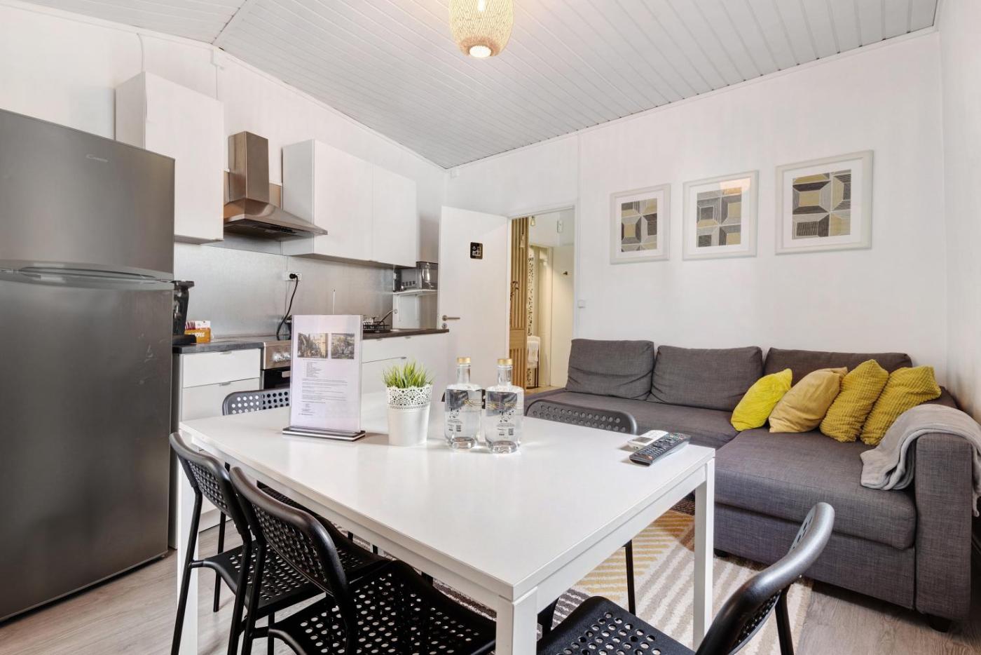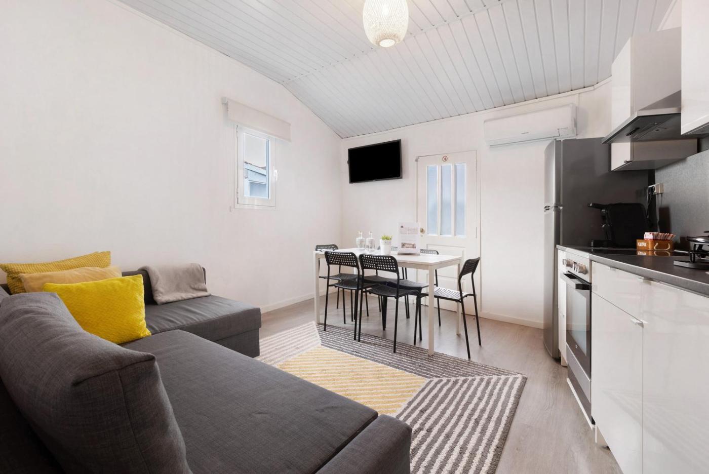 Este apartamento com ar condicionado tem 2 quartos, uma sala de estar, uma cozinha totalmente equipada com forno e máquina de café, e 1 casa de banho com chuveiro e produtos de higiene pessoal gratuitos. Toalhas e roupa de cama são providenciadas neste apartamento.