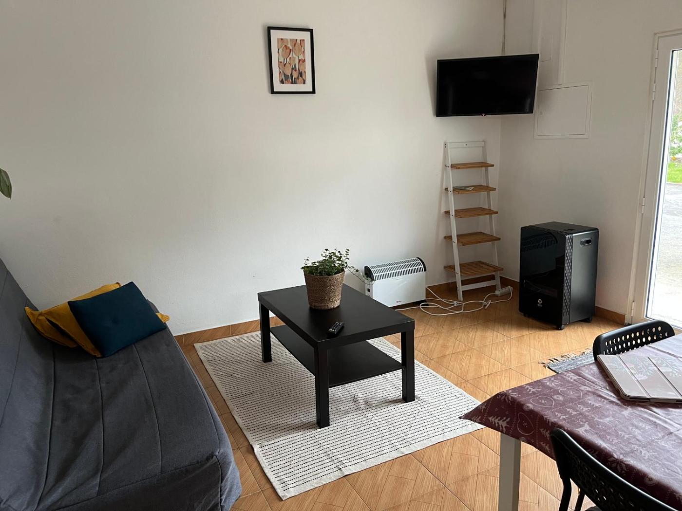 Esta casa de férias com um terraço e vista da piscina apresenta 1 quarto, uma sala de estar, uma televisão de ecrã plano, uma cozinha equipada com frigorífico e máquina de lavar louça, e 1 casa de banho com chuveiro. Toalhas e roupa de cama são providenciadas nesta casa de férias.