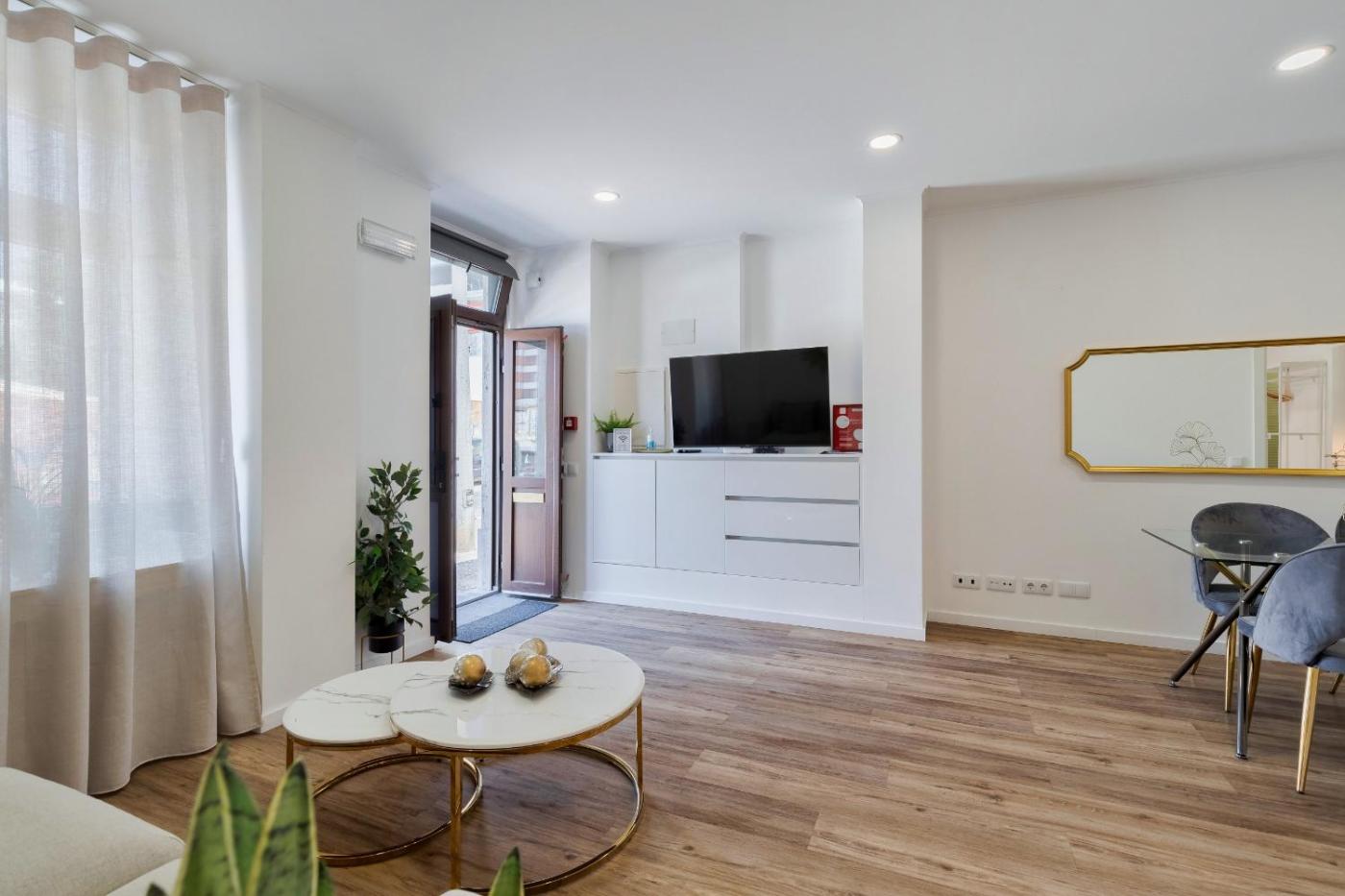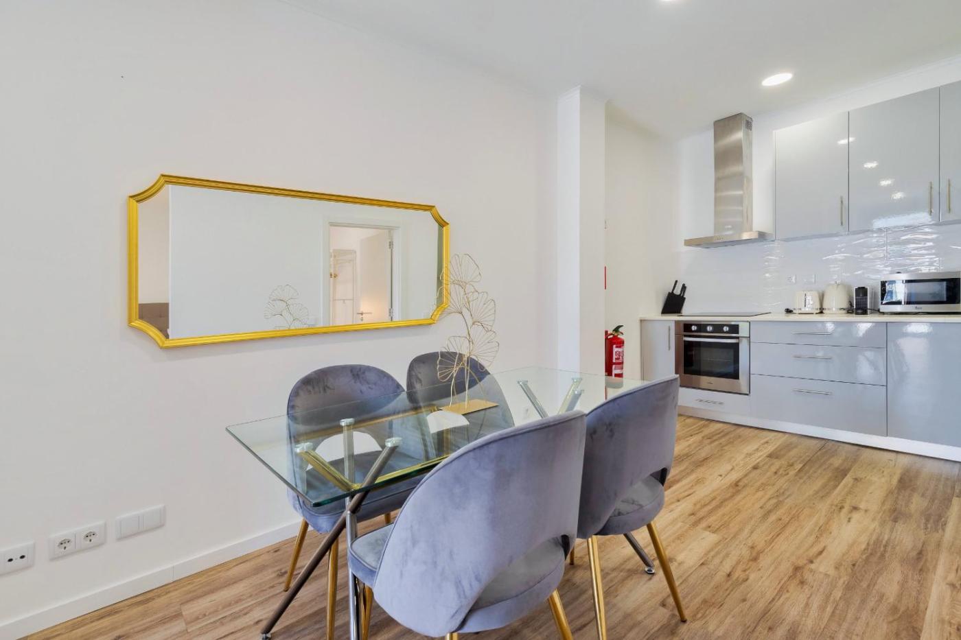 Este apartamento dispõe de uma televisão. A cozinha inclui um frigorífico, um forno e um micro-ondas, assim como máquina de café e chaleira.